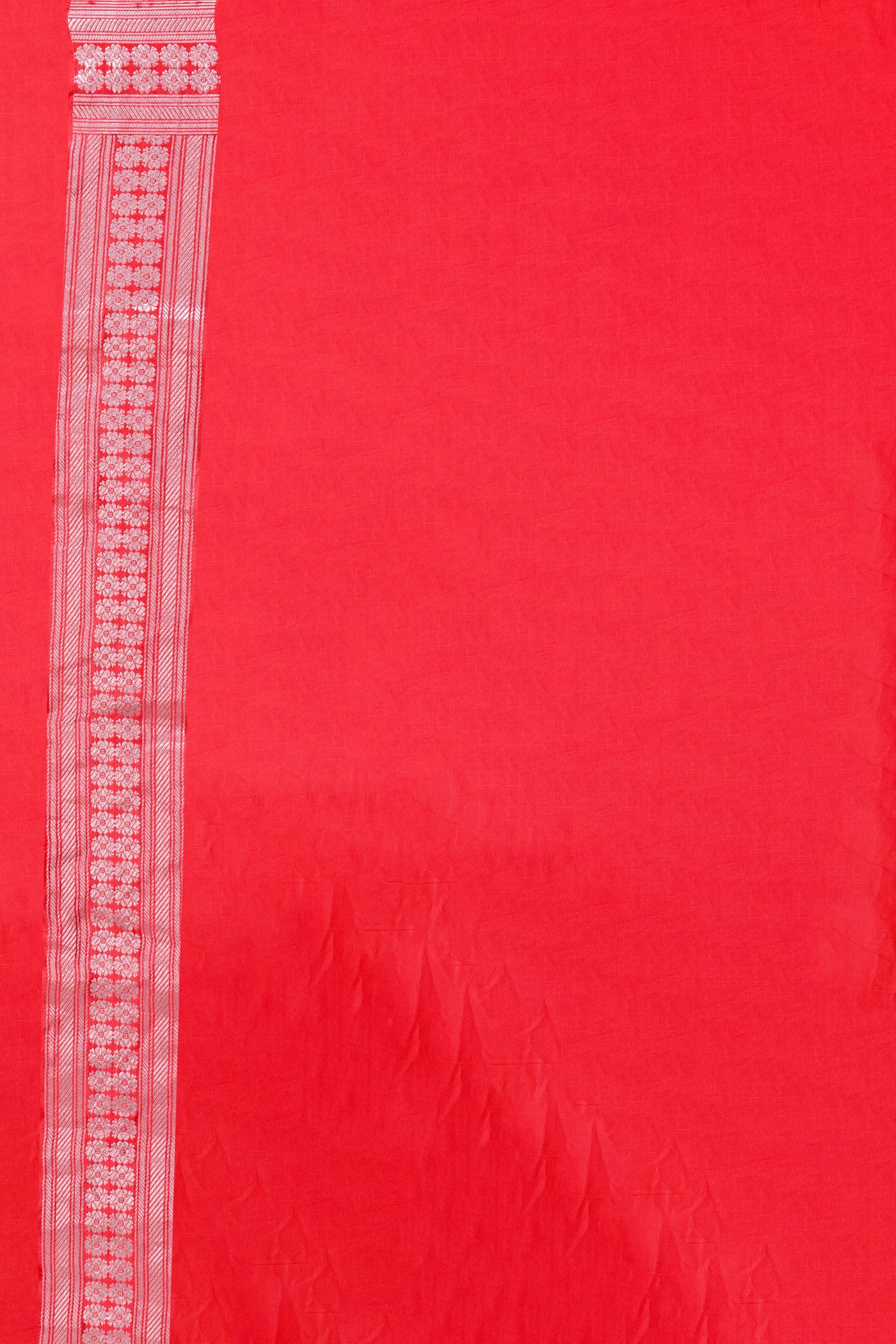 A red Gajji silk saree adorned with rhythmic floral motifs and a refined heritage border, expressing artisanal elegance.