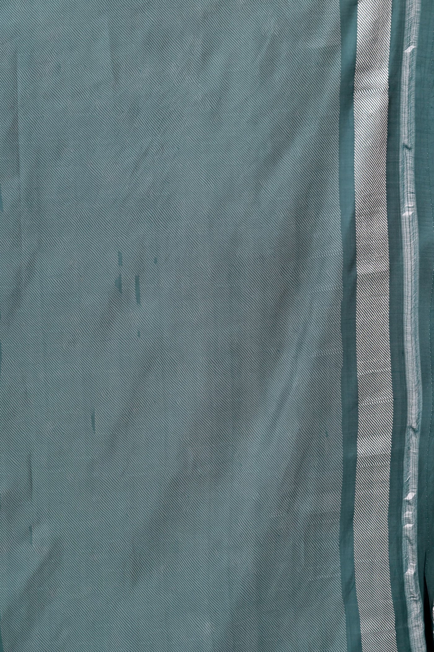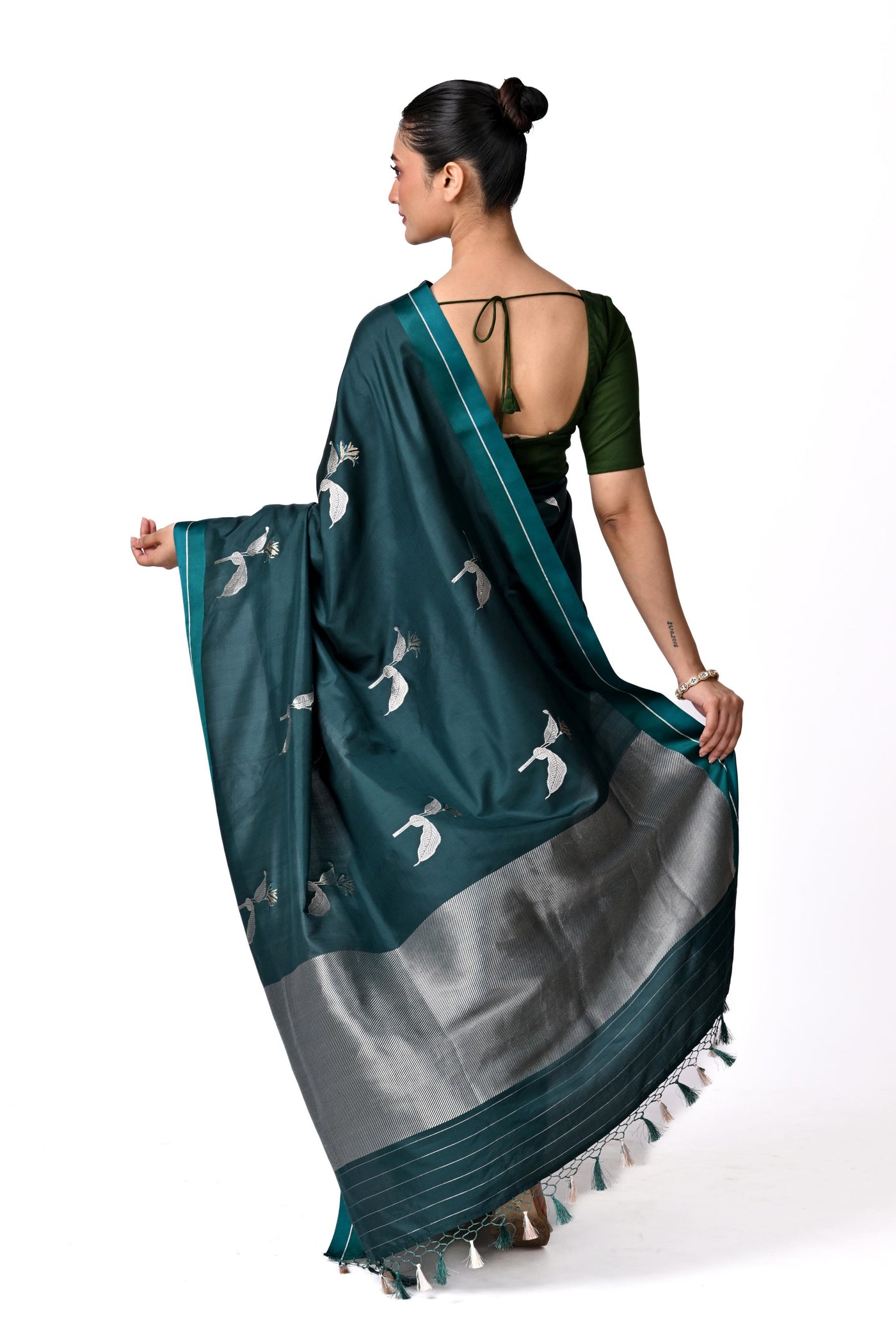 Handcrafted Ektaara Benaras in Teal green and silver botanical motifs with Teal green mashru border.
